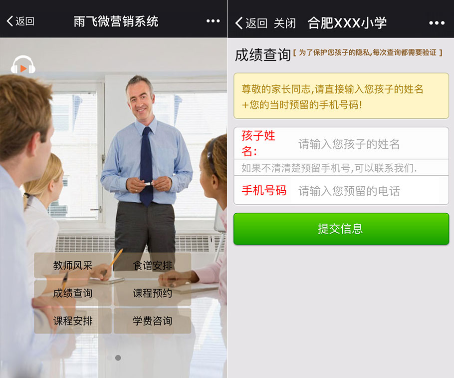 教育行業(yè)。粉絲可以在線查看課程、教師、學(xué)校食譜,并能進(jìn)行課程預(yù)約、查詢成績等。