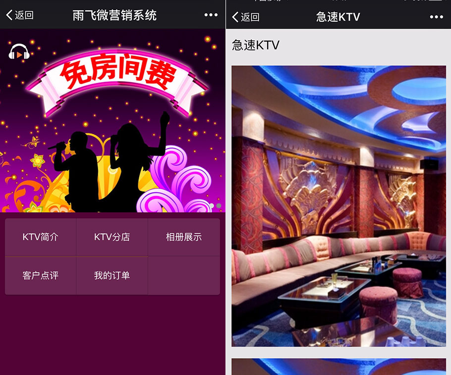 KTV可以在線上設(shè)置門店信息與包廂預(yù)定等信息,粉絲可以線上預(yù)定包廂預(yù)定。商家能在后臺(tái)查看粉絲訂單詳情,并進(jìn)行處理。