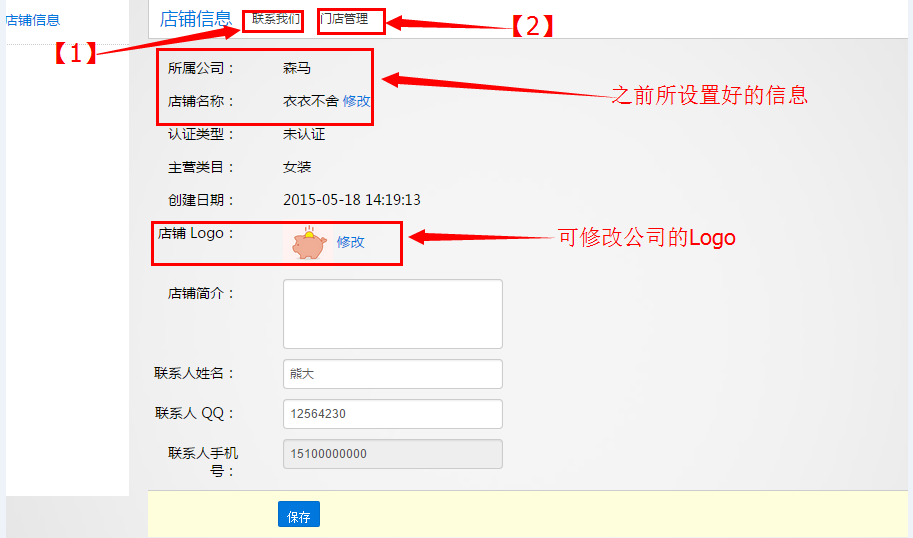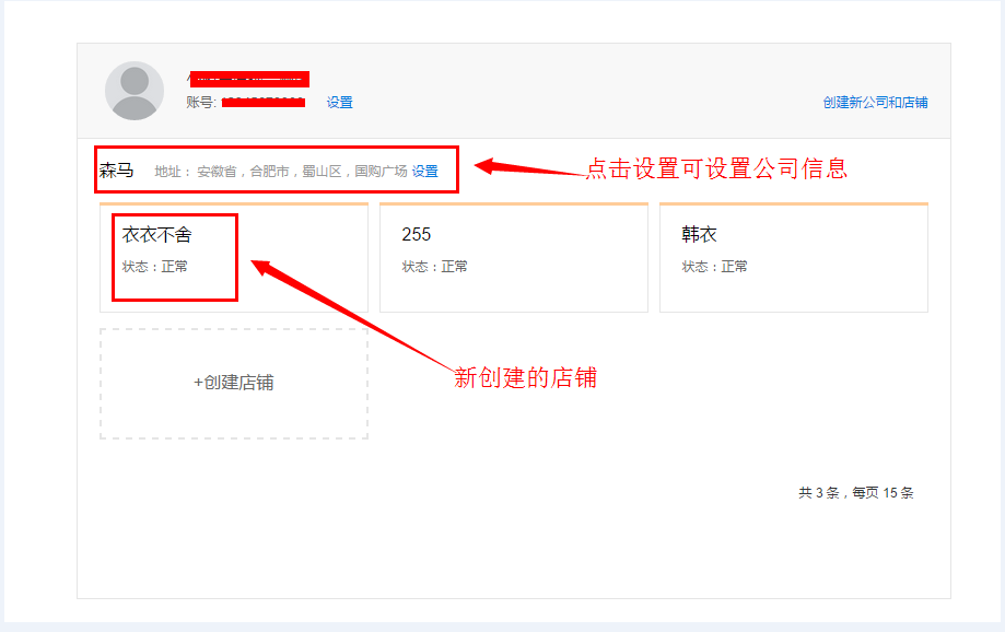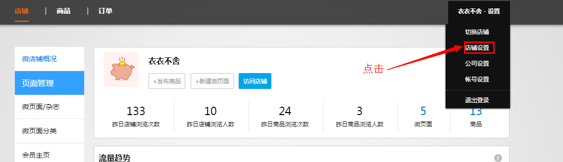 點擊進入所創(chuàng)建的店鋪,點擊店鋪設置: