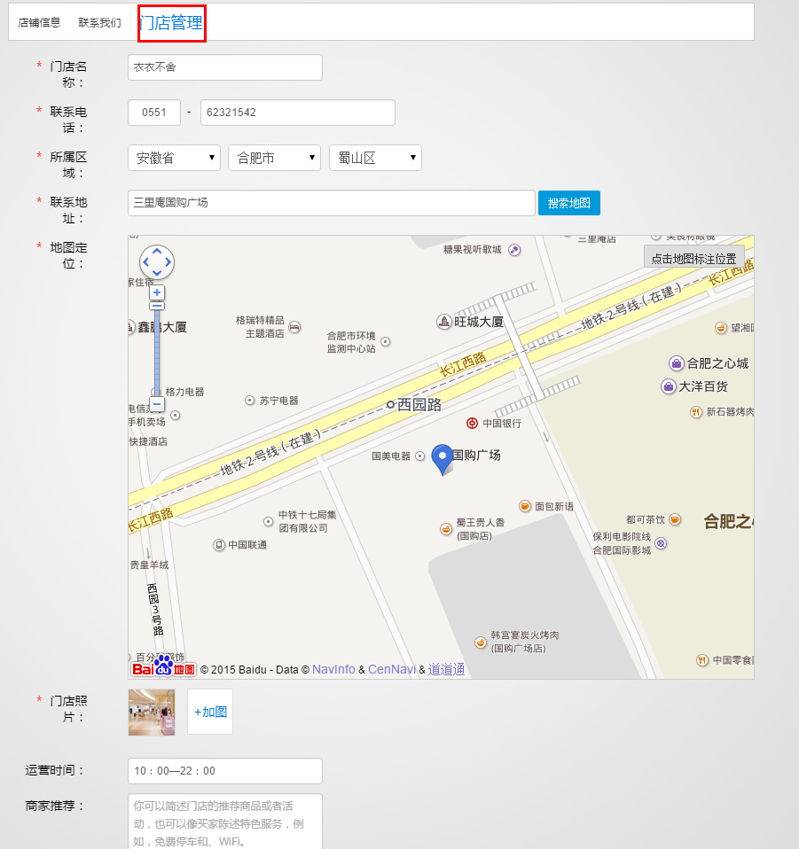 【2】點擊門店管理——新建。如圖:
