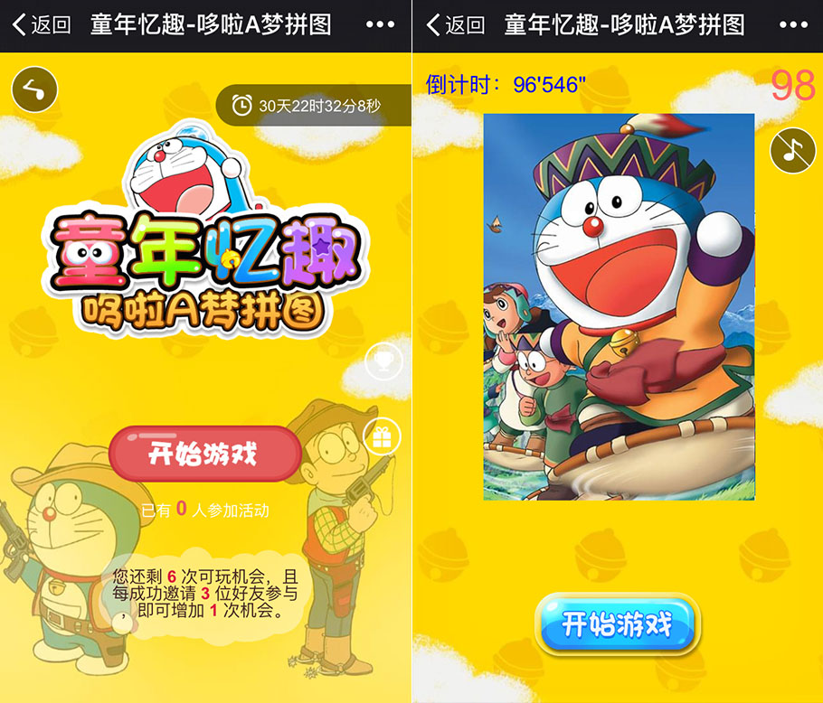 《童年憶趣:哆啦A夢拼圖》:每個人的童年都有一個哆啦A夢和大雄。童年憶趣,拼出你的美好回憶。內(nèi)容上主打童年情懷回憶牌,結(jié)合兒童節(jié)節(jié)日氣氛,必將引起無數(shù)粉絲的關(guān)注和共鳴,開啟集體追憶童年的狂潮。