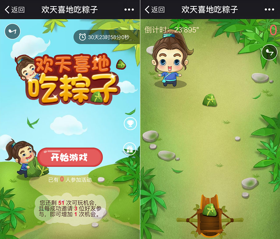 屬于端午互動營銷應(yīng)用,游戲生動有趣,吸粉傳播不容小覷。這款游戲以端午傳統(tǒng)習(xí)俗吃粽子為主要背景元素,適合所有的行業(yè)進行端午節(jié)日營銷。餐飲、商超、汽車、房產(chǎn)、美容等等,都可以設(shè)點小禮品,吸引粉絲參與,互動吸粉加傳播,效果絕對杠杠滴!
