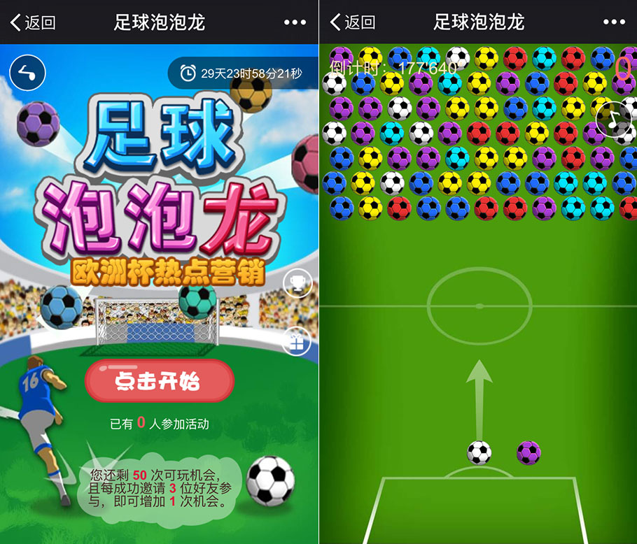 應(yīng)用場景: 適用于火爆足球賽事(歐冠、歐洲杯、奧運會),和熱點互動,極易感染粉絲,獲得粉絲大量關(guān)注和積極參與;也能用于體育、健身、娛樂等其他行業(yè),為商家?guī)頋q粉和品牌傳播。