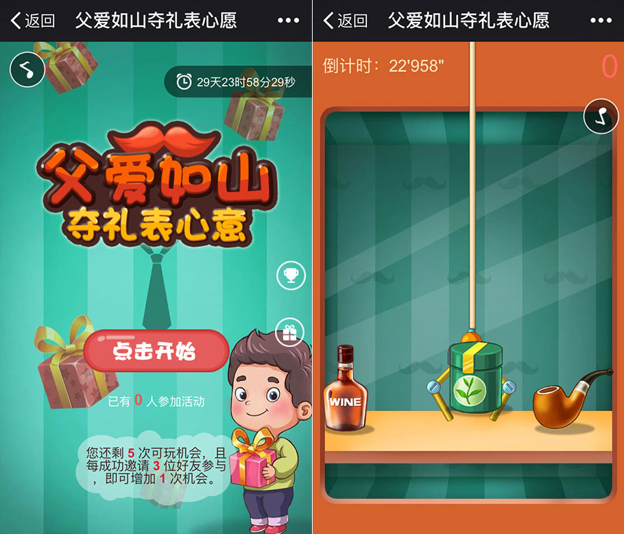 父愛(ài)如山,廣闊而深沉。父親節(jié)臨近,奪個(gè)小禮物以表心意。點(diǎn)擊傳送帶上滾動(dòng)的禮物,讓機(jī)械臂抓住。抓得越多,得分越高。