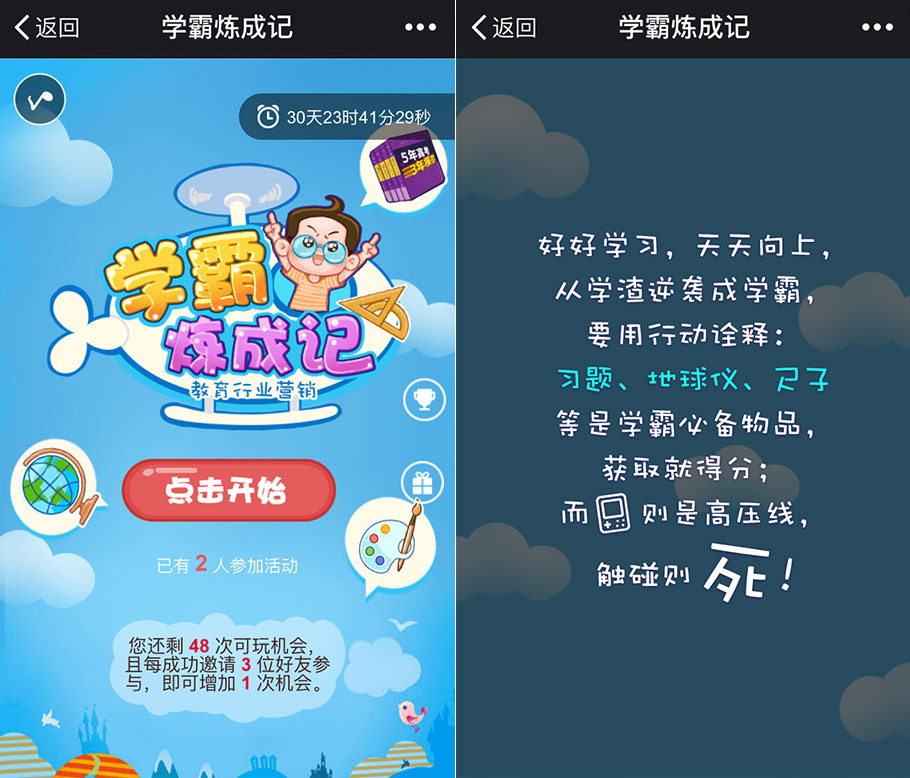 適用于教育行業(yè),如培訓、學校、幼兒園等。除此之外,像餐飲、商城、游樂園等也可以利用互動游戲,引流粉絲至線下,拉動消費。