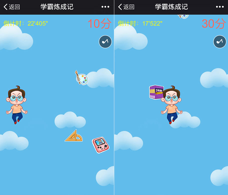 一枚真正的學霸是如何煉成的?除了好好學習天天向上,可能還有五年高考三年模擬…get習題、地球儀、尺子可得分,觸碰到游戲機則游戲結(jié)束。在規(guī)定時間內(nèi),得分越高,排名越高。