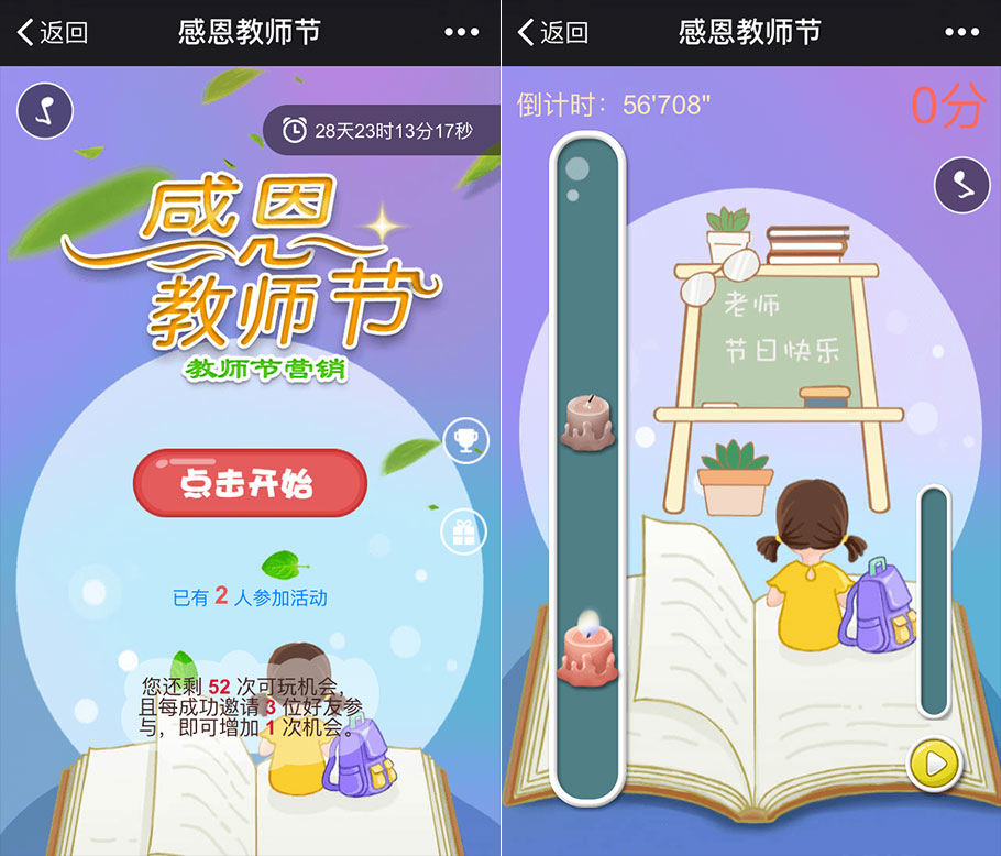 可適用于教育行業(yè),如培訓(xùn)班、學(xué)校、幼兒園等相關(guān)行業(yè)等,在教師節(jié)期間,和粉絲進(jìn)行互動。最愛搶熱點的百搭行業(yè),如商城、零售、餐飲等行業(yè),也可以借勢來一波營銷互動漲粉與傳播。