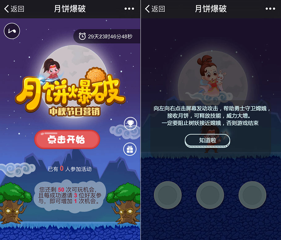 屬于中秋節(jié)日營銷,適用行業(yè)廣泛。比如餐飲、生鮮、商城、零售、房產(chǎn)、汽車、游樂場所等行業(yè),都可利用這四款游戲,在中秋節(jié)期間,和粉絲進(jìn)行線上互動(dòng),并有效形成品牌傳播或粉絲轉(zhuǎn)化,在節(jié)日獲得品牌曝光以及門店盈利。