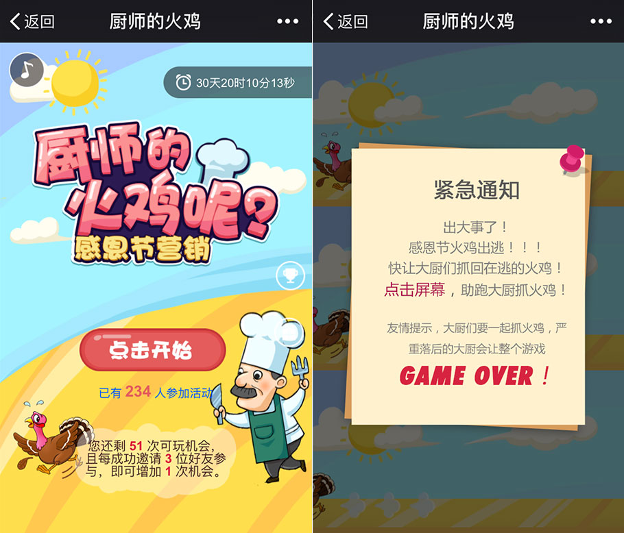 專為感恩節(jié)而推出的營銷工具,最適宜用于感恩節(jié)的營銷互動。比如商城、零售、餐飲、娛樂等其他相關(guān)行業(yè)或有營銷需求的商家,都可以利用這款游戲,進行吸粉互動、傳播、提升粉絲轉(zhuǎn)化等等。