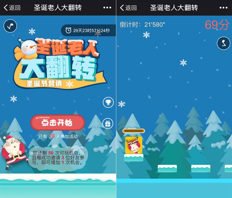 游戲適用行業(yè)特別廣泛,比如商城、餐飲、零售、房產(chǎn)、汽車等行業(yè),都可以在圣誕節(jié)期間,利用這兩款游戲進(jìn)行線上漲粉互動(dòng)、朋友圈傳播、以及促成線上引流以及消費(fèi)轉(zhuǎn)化等營(yíng)銷目的。