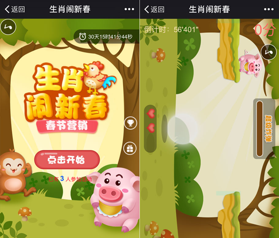以新春元素為主題,融合新年的祥和喜樂氣氛,這款新春營銷互動游戲適用行業(yè)廣泛,比如商城、零售、餐飲、汽車、房產(chǎn)、服務(wù)等行業(yè)。比如餐飲店可以用《生肖鬧新春》策劃“玩游戲送代金券”引導(dǎo)粉絲消費(fèi),促進(jìn)粉絲轉(zhuǎn)化。