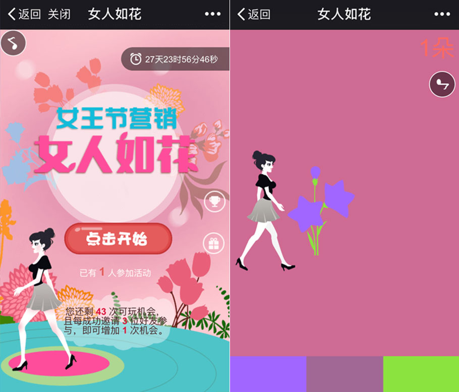 專為三八婦女節(jié)的營銷而開發(fā),適用行業(yè)廣泛。比如商城、餐飲、娛樂、美業(yè)、鮮花等等行業(yè),都可以結(jié)合節(jié)日的氣氛與熱度,達(dá)到宣傳品牌、推廣新品、漲粉引流、互動傳播等等營銷目的。