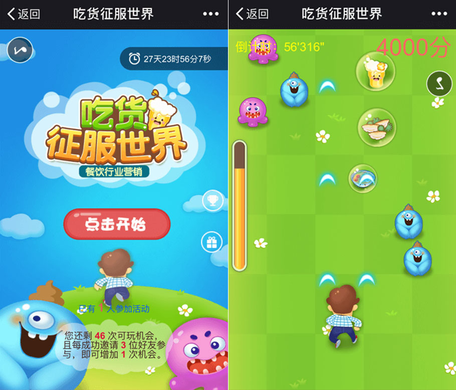 可用于餐飲行業(yè)的營(yíng)銷。商家可對(duì)游戲進(jìn)行定制,比如素材的更換,上傳logo等等,上游戲更具商家品牌特色。游戲趣味性強(qiáng),結(jié)合獎(jiǎng)品營(yíng)銷技巧,這是商家一項(xiàng)不錯(cuò)的互動(dòng)傳播、引流轉(zhuǎn)化營(yíng)銷小工具。
