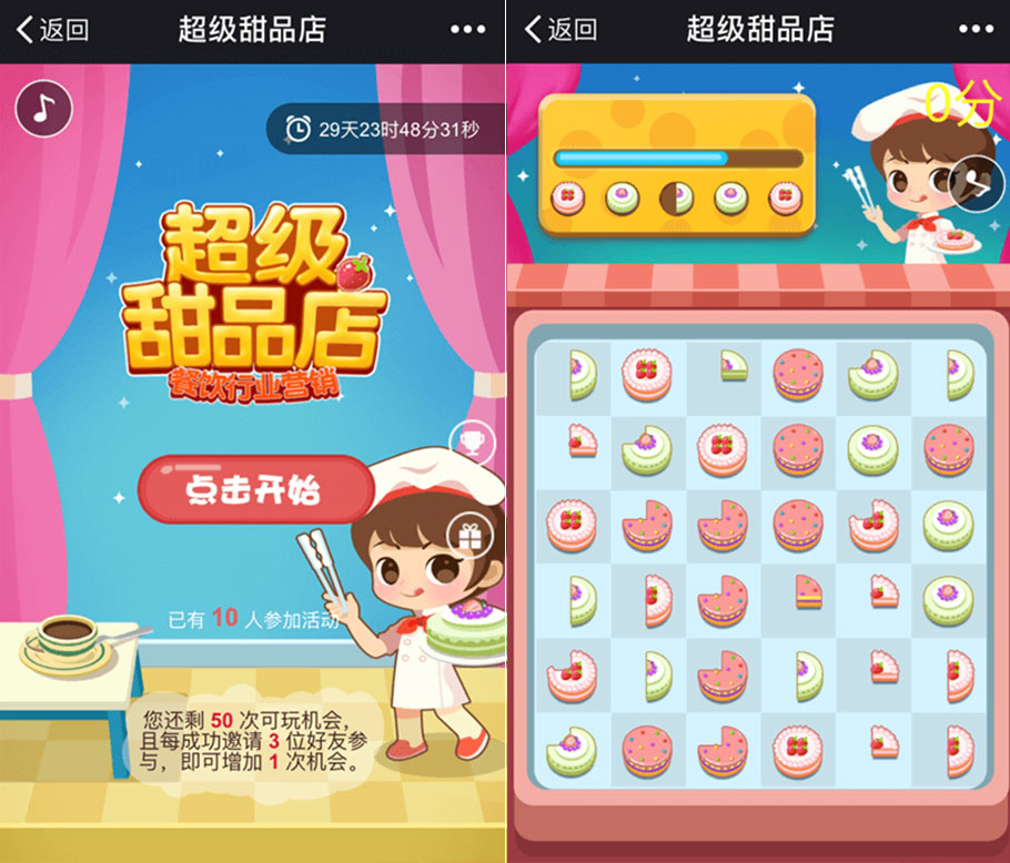 根據(jù)游戲隨機給出的一組甜品,在進度條完結(jié)前,找出顏色與面積均相同的甜品,即可得分。得分越高,排名越高。