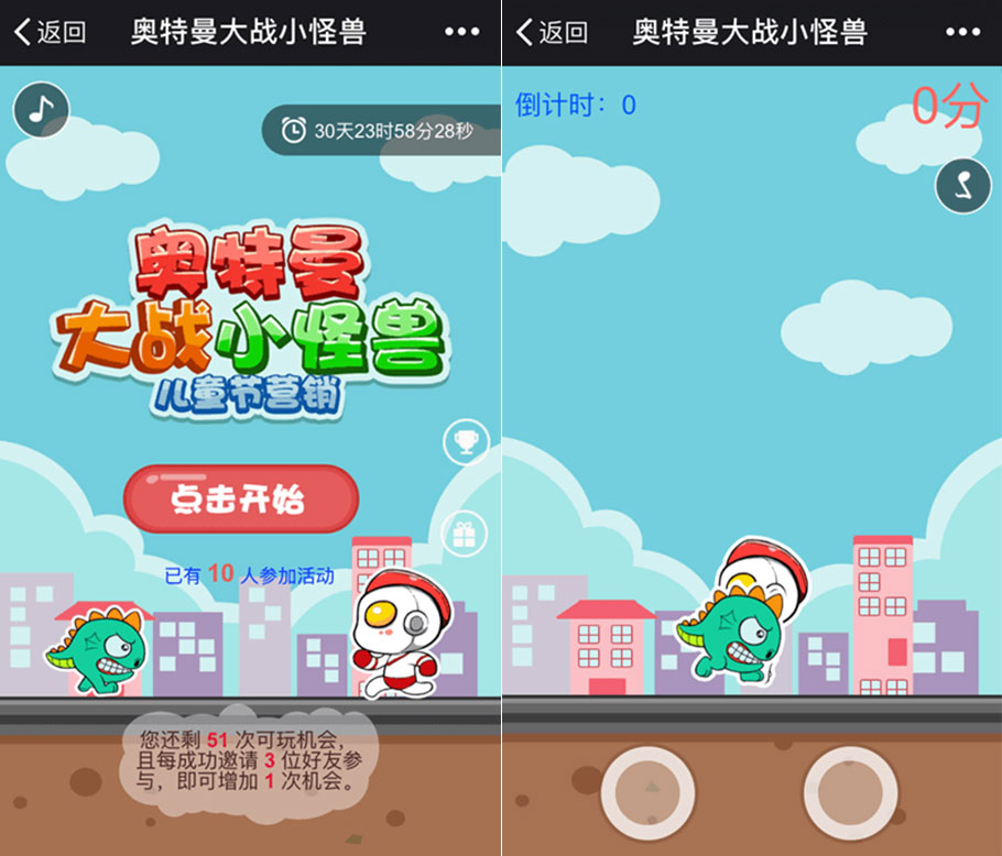 適用行業(yè)廣泛,比如親子、教育、培訓(xùn)、兒童樂園、商城、餐飲、廣告、媒體等行業(yè)。比如游樂園策劃“玩游戲贏門票”、玩具商城“玩游戲贏禮品卡”、餐飲行業(yè)“玩游戲免費送兒童套餐”等等節(jié)日營銷活動,游戲的超強趣味以及節(jié)日的氣氛烘托,極易引起粉絲的積極參與和互動。