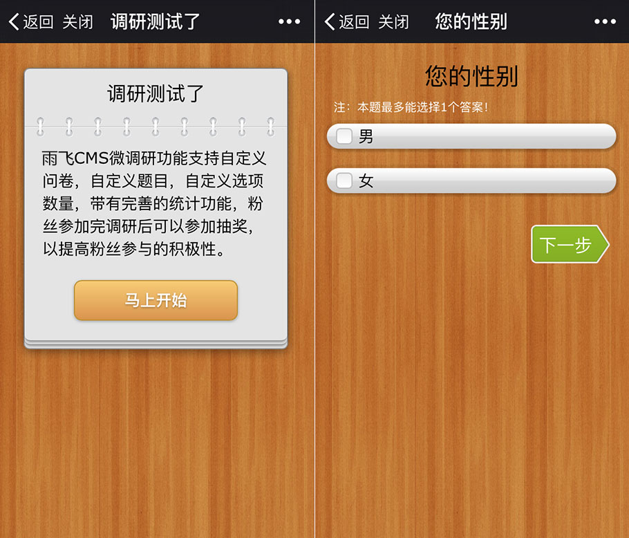 掃一掃進(jìn)行體驗(yàn)YfdCms微調(diào)研功能支持自定義問卷,自定義題目,自定義選項數(shù)量,帶有完善的統(tǒng)計功能,粉絲參加完調(diào)研后可以參加抽獎,以提高粉絲參與的積極性。