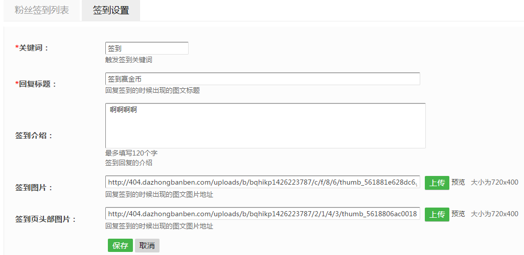 4.簽到頁(yè)頭部圖片:觸發(fā)簽到功能回復(fù)簽到的時(shí)候圖文圖片地址