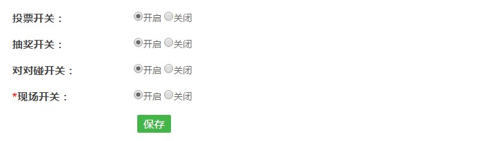 7. 投票開關(guān)、抽獎開關(guān)、對對碰開關(guān)、現(xiàn)場開關(guān):選擇開啟投票按鈕投票活動將開啟,粉絲可以參與,選擇關(guān)閉,粉絲則參加不了活動,對對碰和抽獎開關(guān)是針對商家,點(diǎn)擊開啟后,商家在大屏幕上即可隨機(jī)對粉絲進(jìn)行玩抽獎,對對碰活動。