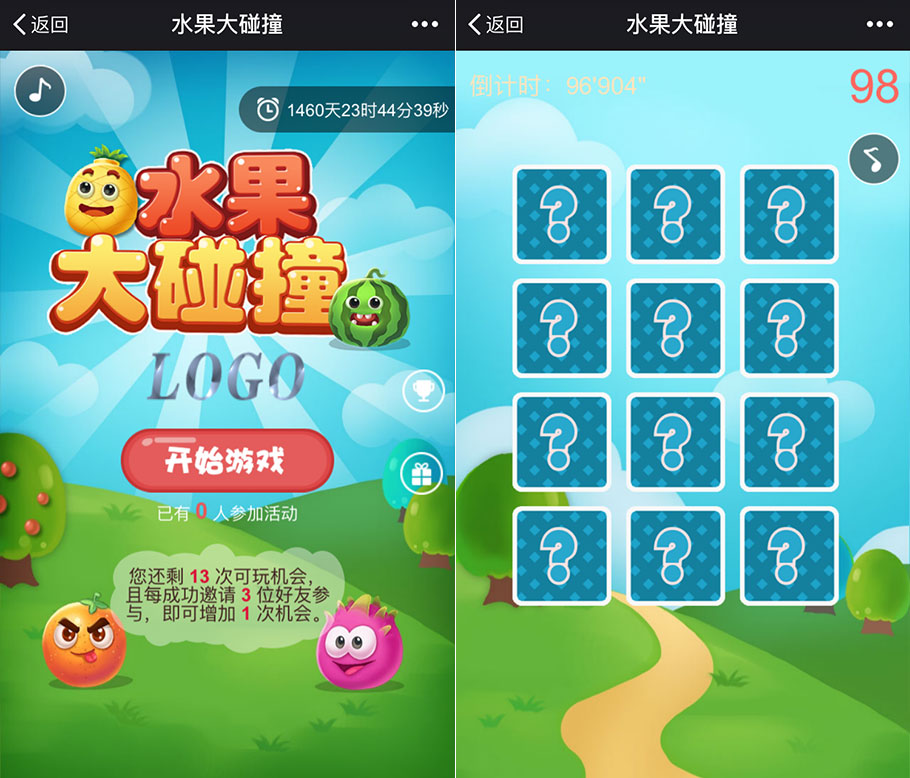 考驗記憶的小游戲,一邊翻牌一邊記憶,迅速將相同水果配對。