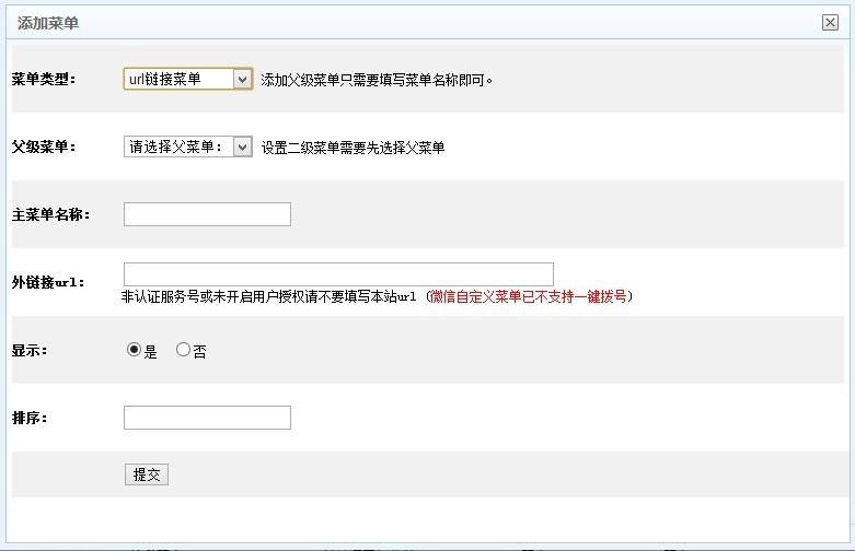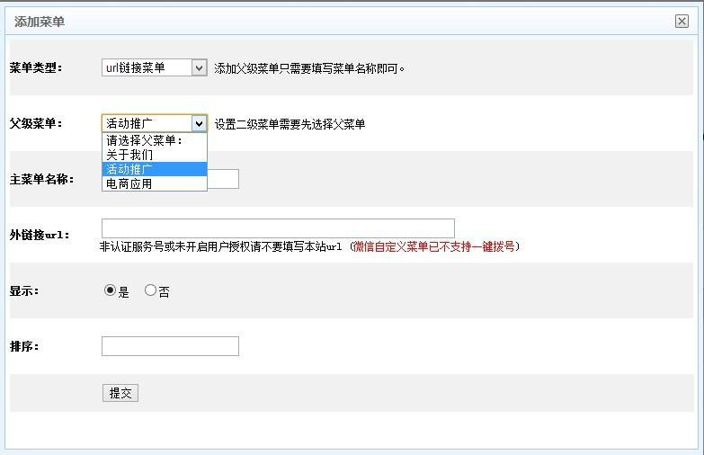 1.添加自定義菜單的二級(jí)菜單時(shí)一定要選擇父級(jí)菜單選項(xiàng),直接添加默認(rèn)為一級(jí)菜單。